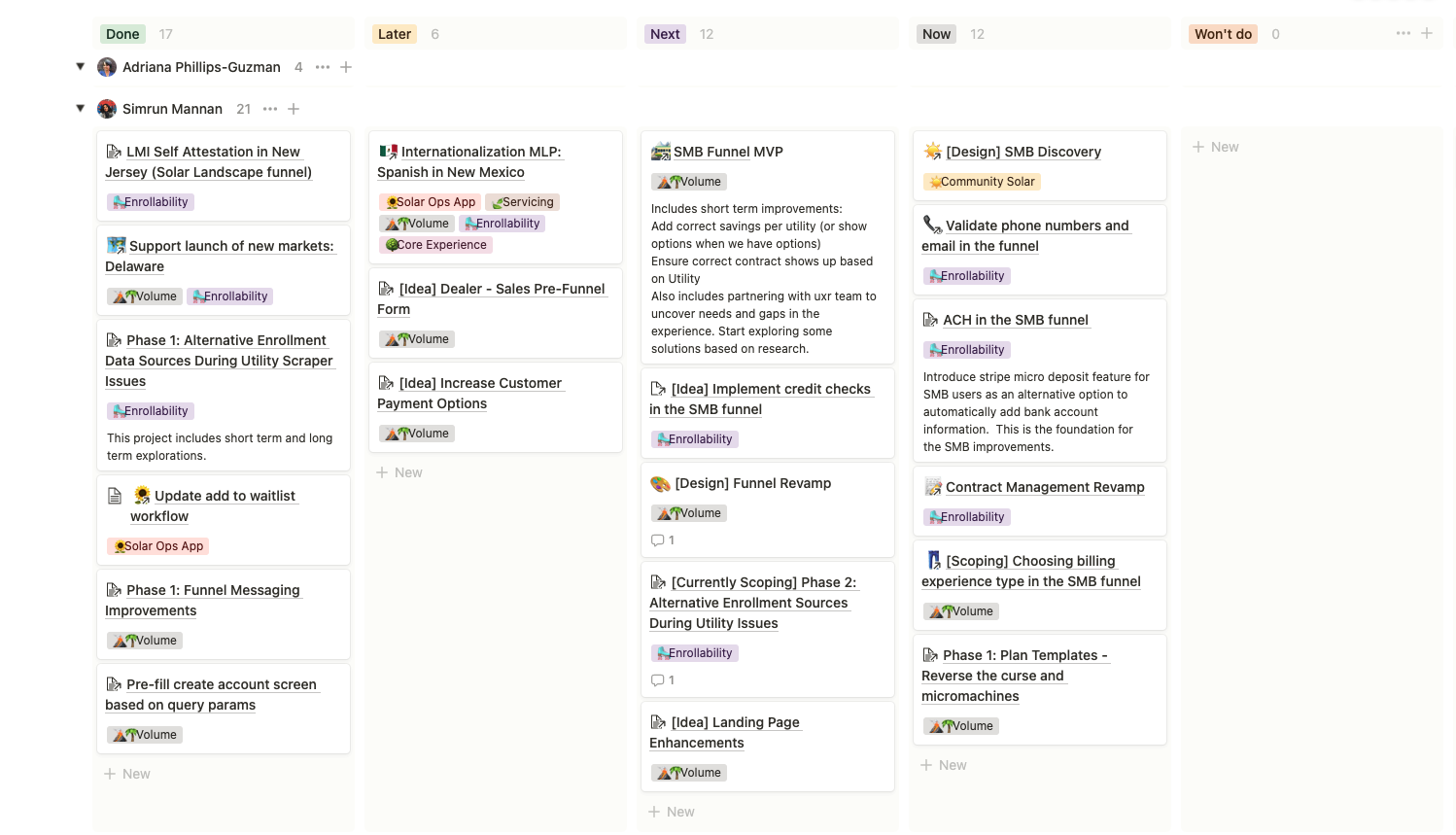Over time, I shaped a planning system that gave the design team clarity without adding overhead. It combined high-level goal setting with day-to-day task tracking, and made it easy to prioritize both roadmap work and incoming design requests.