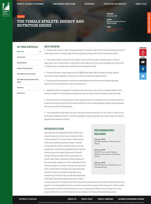 Gatorade has been VML's top client since 2010. Our team has always strived to deliver great work and solid results for the company. In 2016, a small team was put together to redesign the Gatorade Sports Science Institute (GSSI). This institution's mission is to help athletes optimize their health and performance through research and education in hydration and nutrition science. In other words, their research provides insights about our beloved Gatorade beverages.